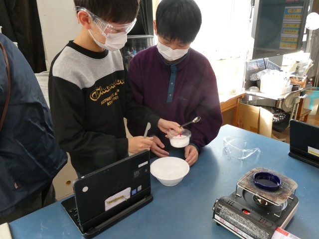 保護メガネを着用し、火の扱いにも細心の注意を払いながら実験を進めました。