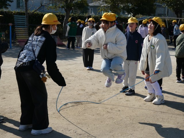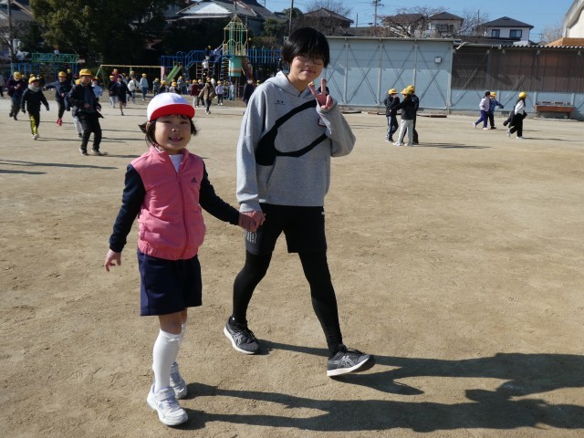 長縄に挑戦したり、遊具で遊んだり、鬼ごっこで鬼を決めて、ペアと一緒になって逃げたりする元気な姿をたくさん見ることができました。