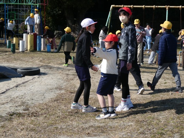高学年の児童が、下級生の歩幅に合わせて歩いたり、遊びのルールを優しく教えたりする姿がとても印象的でした。