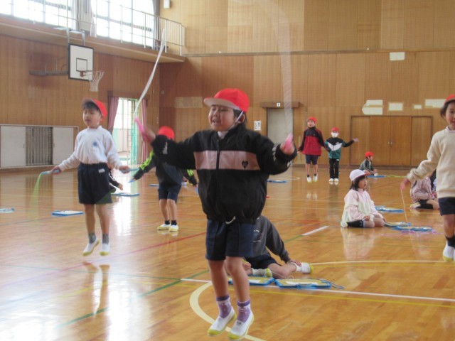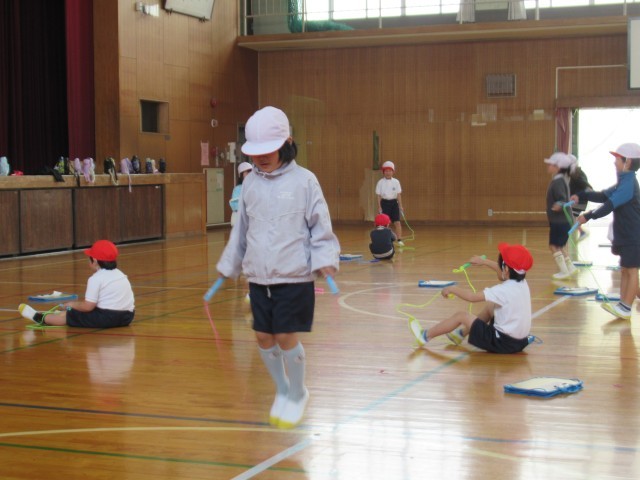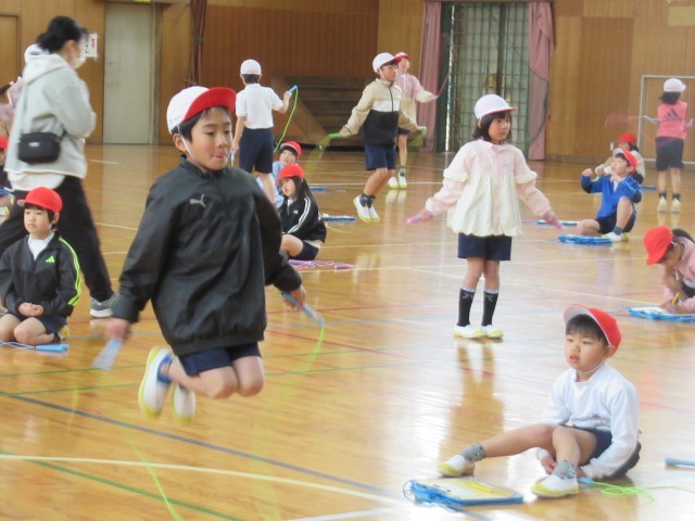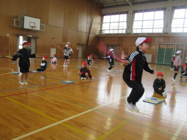 体育館では、1年生が「なわとびチャレンジ!」を行っていました。前跳び、後ろ跳び、あや跳びの3種目をペアの子が数を数え、最高記録をめざして、みんないっしょうけんめい跳んでいました。2学期からなわとびの練習が始まり、最初は、なかなか跳べなかった子もいましたが、授業や放課等での練習によって、上手に跳べるようになる子も増え、最高記録に喜んでいる姿をみていると、私たちも嬉しくなりました。上位3位の子には、賞状が出るそうです。楽しみですね。