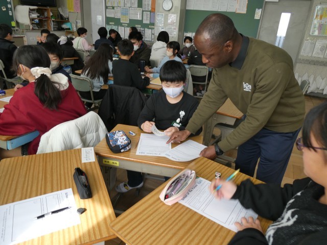 ALTの先生方が机を回り、一人ひとりに優しくアドバイスをくれるので、子ども達も安心してペンを動かしていました。