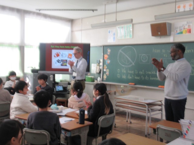 阿久比町の国際交流事業の一環として、ALTの先生方による「オールイングリッシュ」の特別授業が行われました。