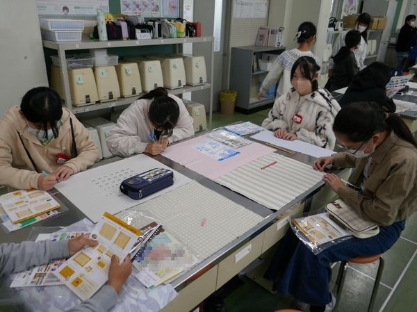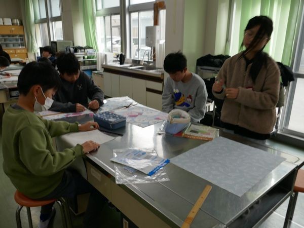 作ったランチョンマットは、中学校の給食で使います。これも中学校入学に向けた準備の一つです。