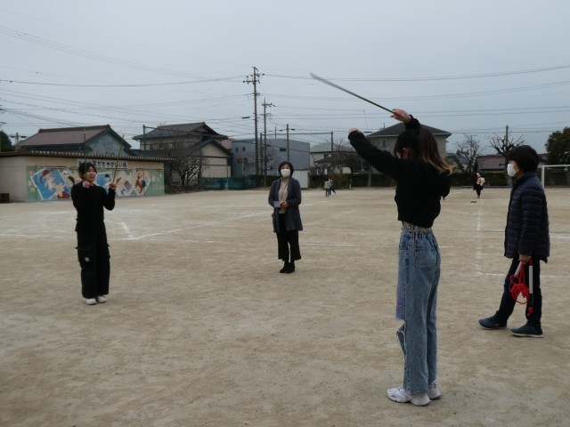 休憩時間には、ドッジビーをやったり、6年生はトーチの練習を見てもらったりと過ごしていました。