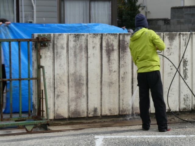 高圧洗浄機で長年の汚れを勢いよく落とし、剥がれかけている塗装をはがしていただきました。