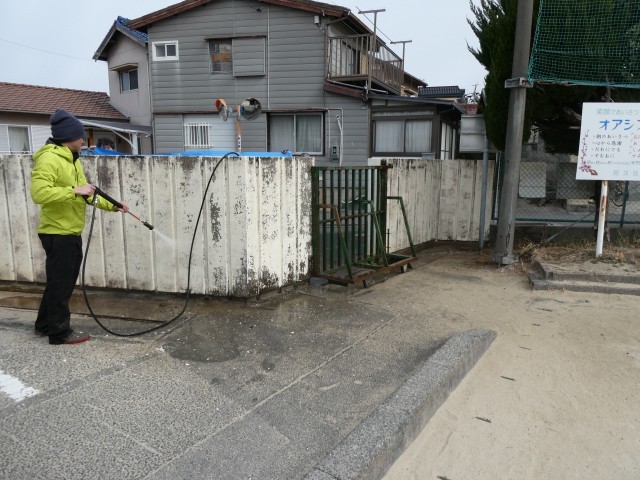 2月7日(土) 正門付近の壁の清掃作業(地域ボランティア)
