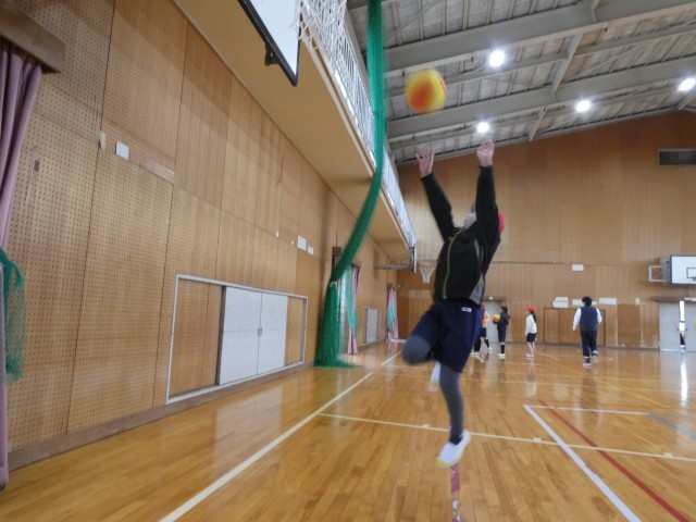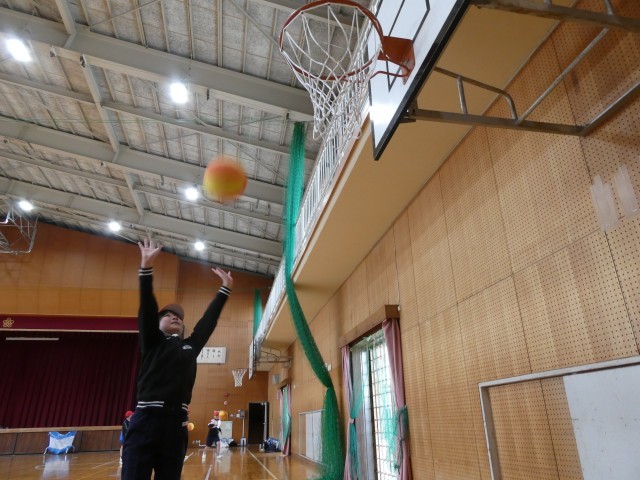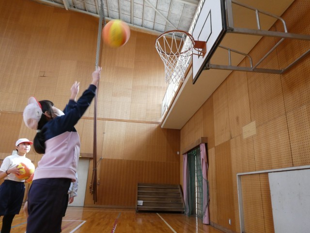 今日の体育の学習では、ゴール型:バスケットボールのシュート技能の向上に取り組んでいました。