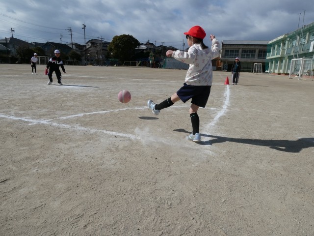 ゲームでは、力強くボールを蹴り出す瞬間や、ボールを一生懸命追いかける子ども達の様子が見られました。