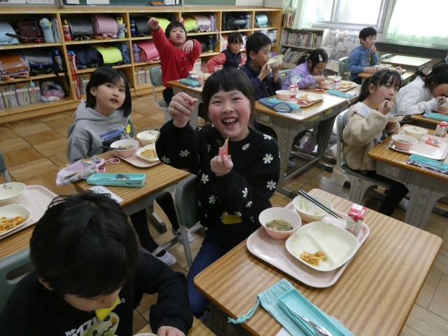 今日の給食時間は、教室中が活気と笑顔であふれていました。