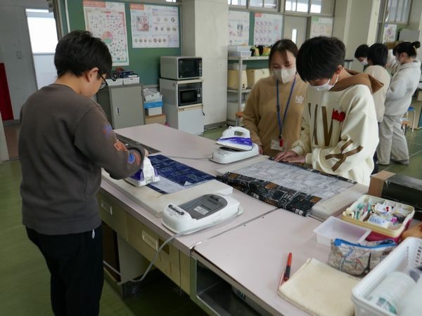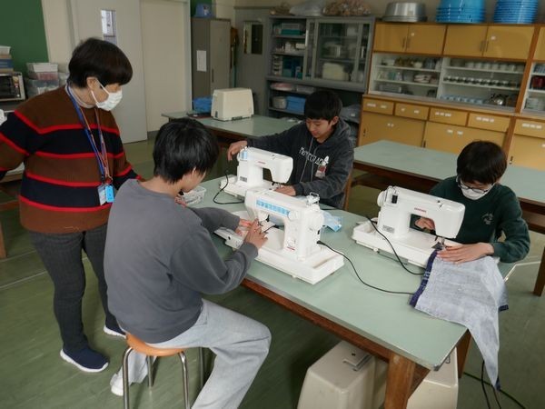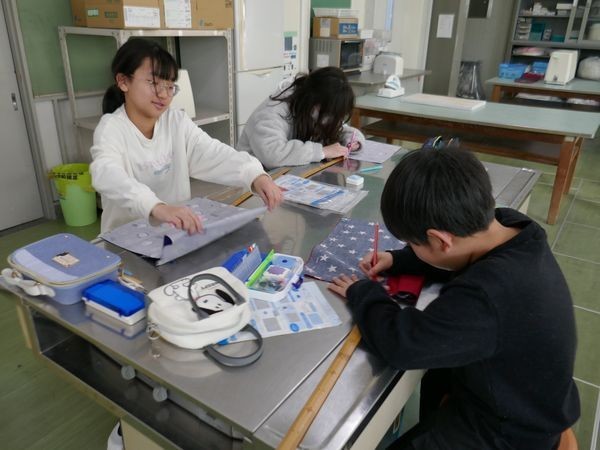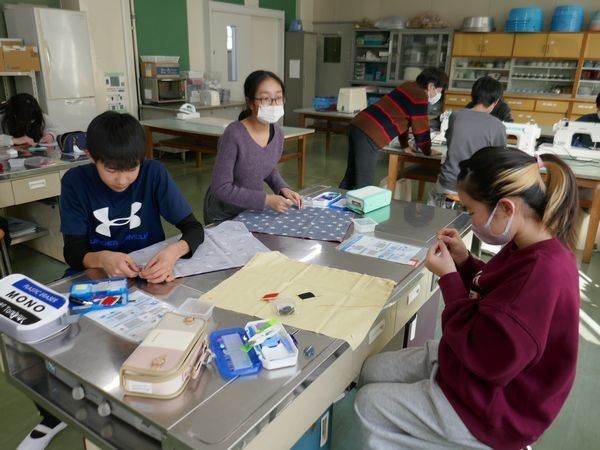 久しぶりに登校した6年2組は、家庭科でランチョンマットづくりです。みんな楽しそうに笑顔で制作しています。