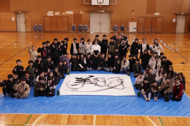 慣れない大きな筆の重さに驚きながらも、江川先生のアドバイスを受けながら、自分たちの想いを一文字に託して表現しました。