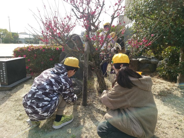 作業を終えた子どもたちの表情は、満開の梅の花に負けないくらい晴れやかでした。