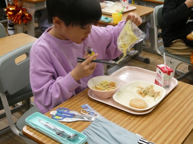 ズルズルっと勢いよく麺をすする音が、どの教室からも心地よく聞こえてきました。