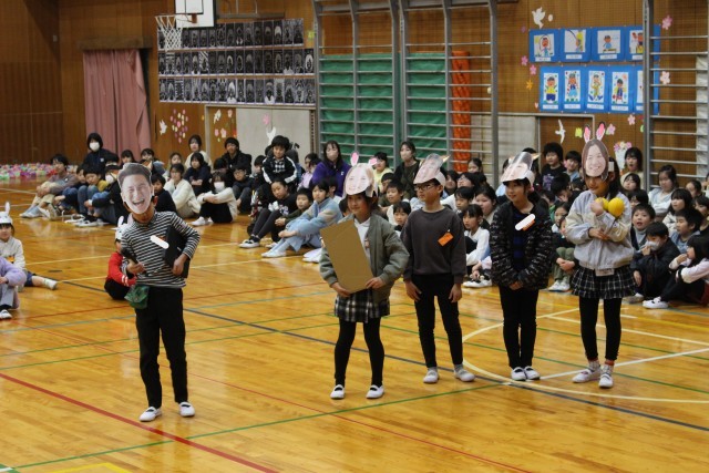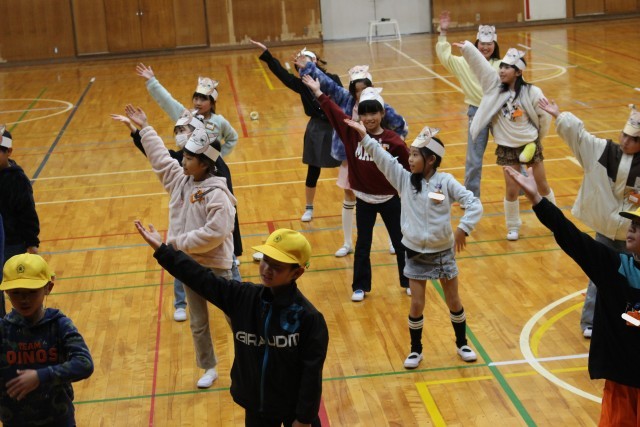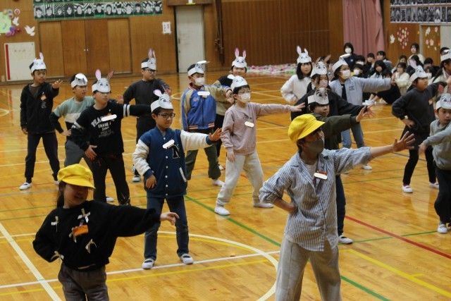 子どもたちが島を探検していると、さまざまな生き物に出会います。キツネ。ウサギ。そして、6年生の先生たち。最後にはみんなが仲良くなり、ダンスを踊りました。笑顔でいっぱいの温かい時間になりました。
