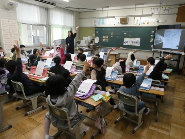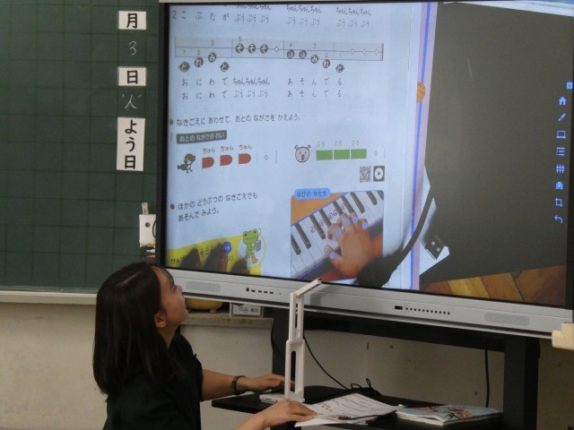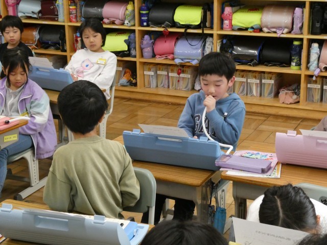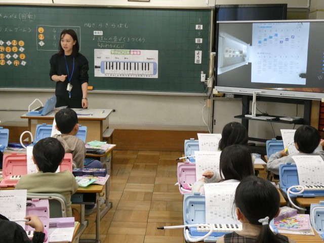 1年生の音楽の時間に、鍵盤ハーモニカを使って「旋律づくり(作曲)」に挑戦しました。