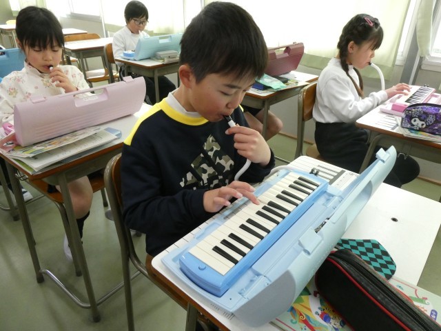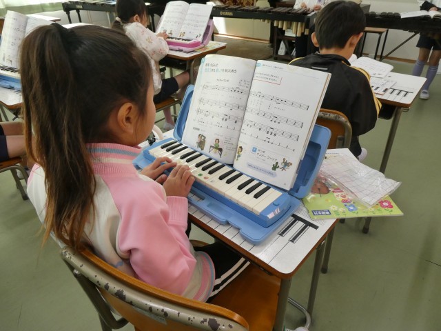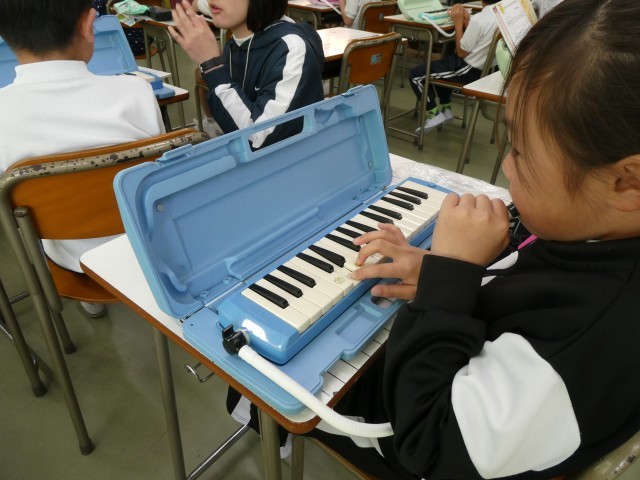 鍵盤ハーモニカを使って、指使いに気をつけながら丁寧にメロディを奏でました。