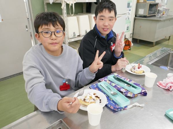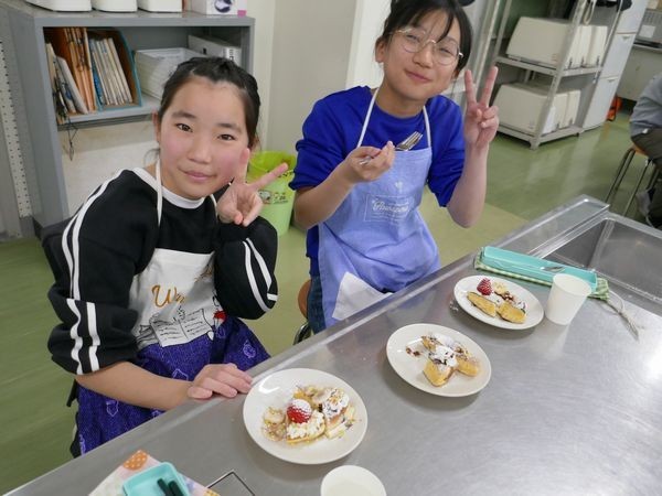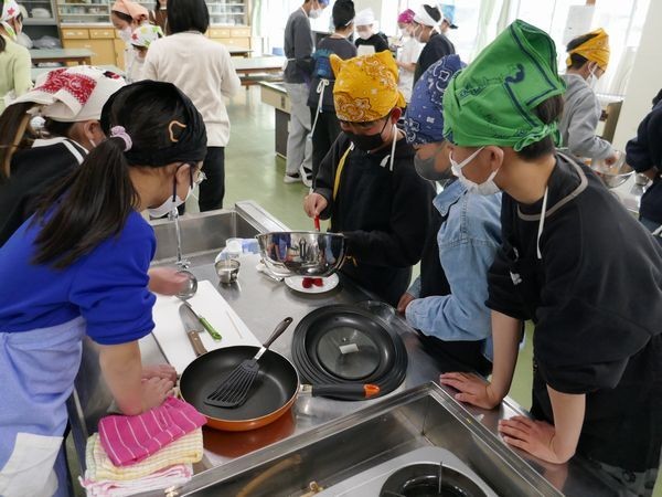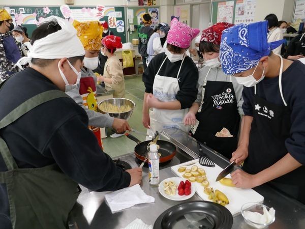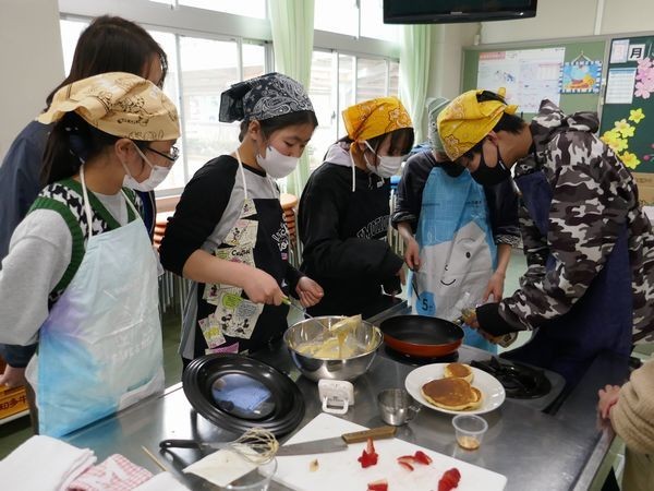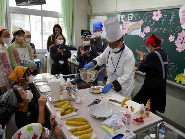 3月13日(金) 家庭科の学習(6年2組) 元ホテルシェフによるパンケーキづくり2日目