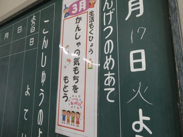 3月の生活目標「感謝の気持ちをもとう」について、