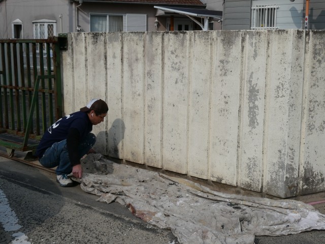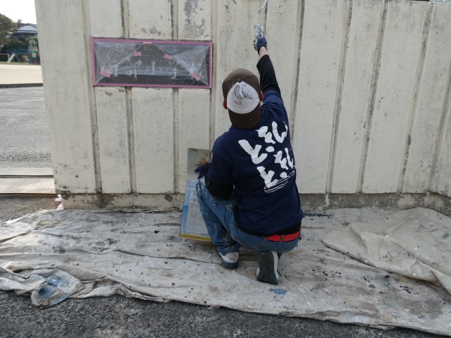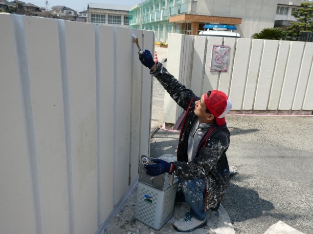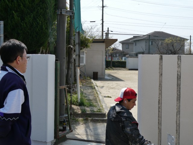 3月30日(月) 正門の壁塗装作業(地域ボランティア)