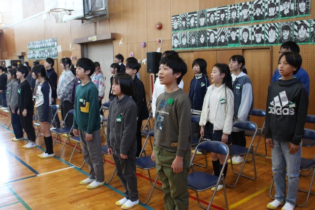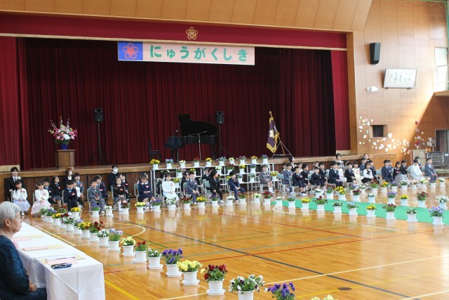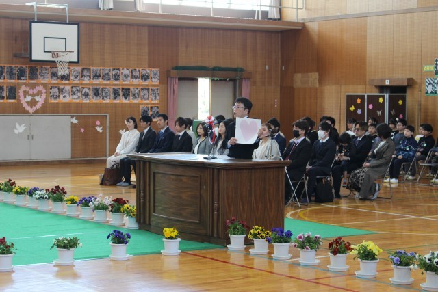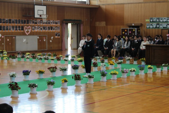 体育館で行われた式典では、校長先生のお話を真剣な表情で聞く姿が印象的でした。