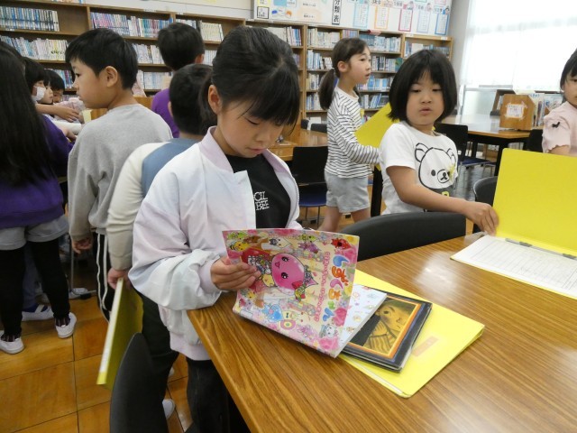 子ども達は自分の図書ファイルを持って、静かに列を作って順番を待っていました。