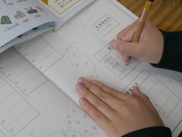 最後は作業帳を使って、都道府県名を正確に書いていきます。まだ習っていない漢字もありますが、地図帳を見ながら正確に書けました。これから各地に旅行に行くのが楽しみになりそうです。