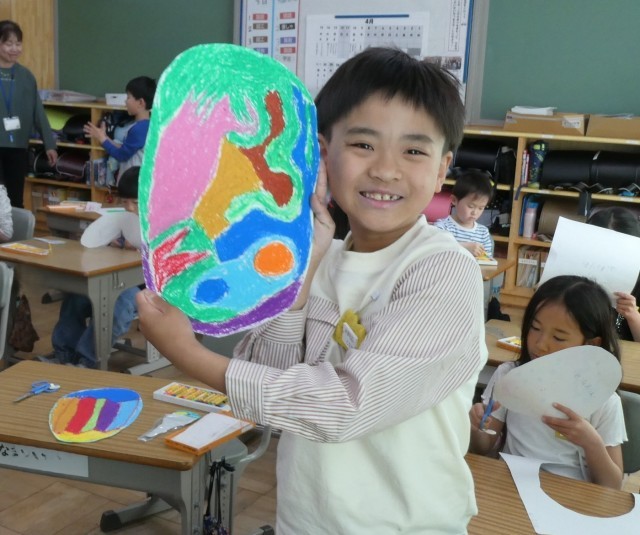 2年生の図工では、カラフルな「ふしぎなたまご」がたくさん描かれました。