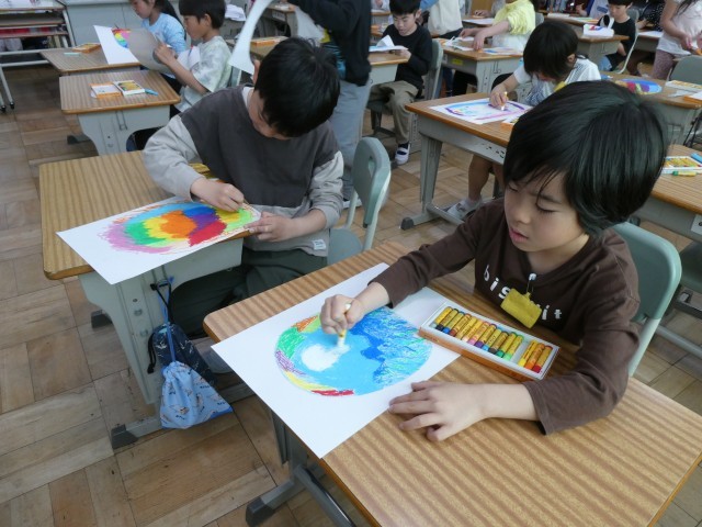 など、子ども達の手元を見ると、クレヨンを力いっぱい動かして、自分だけの特別な色を作り出していました。