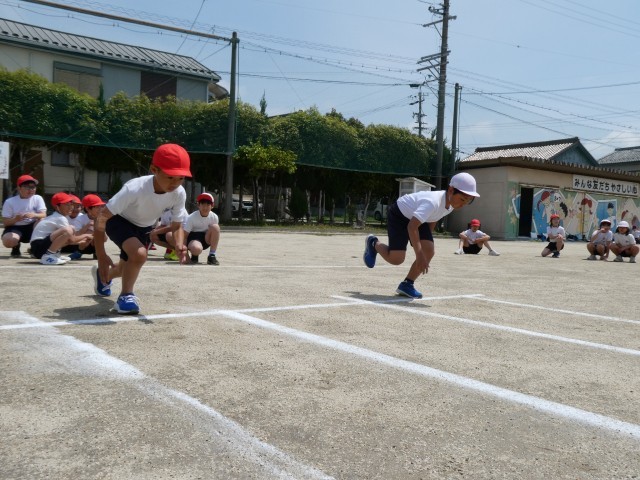 「位置について、よーい…」の合図で、前傾姿勢を意識したスタートしていました。