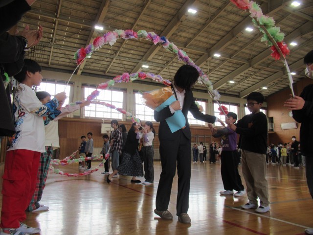 最後は、全校児童で花のアーチを作り、拍手で先生方をお送りしました。