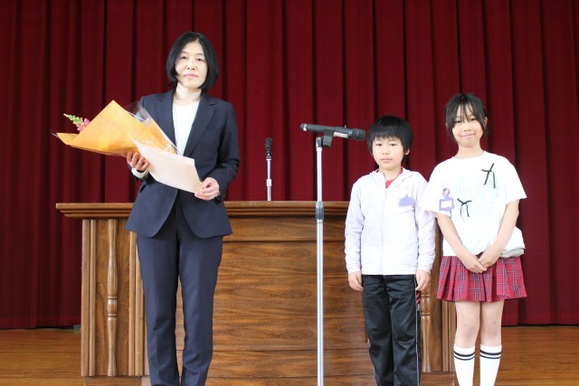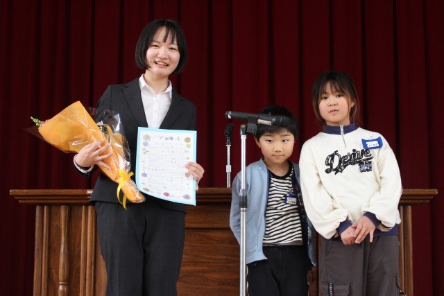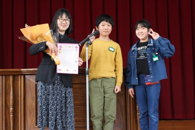 式では、代表児童が先生方一人ひとりとの思い出を振り返り、感謝の言葉を伝えました。