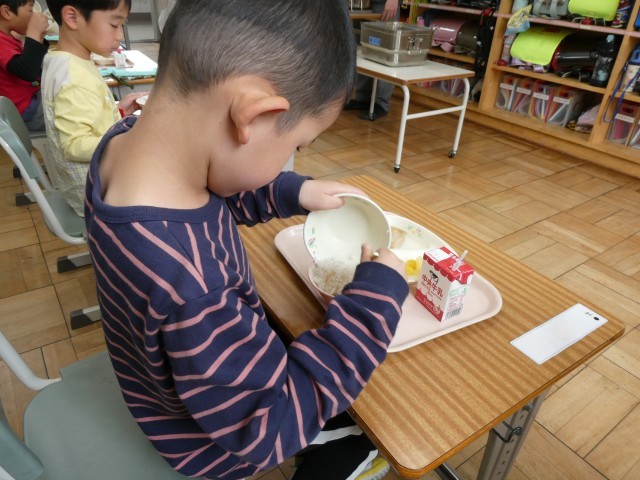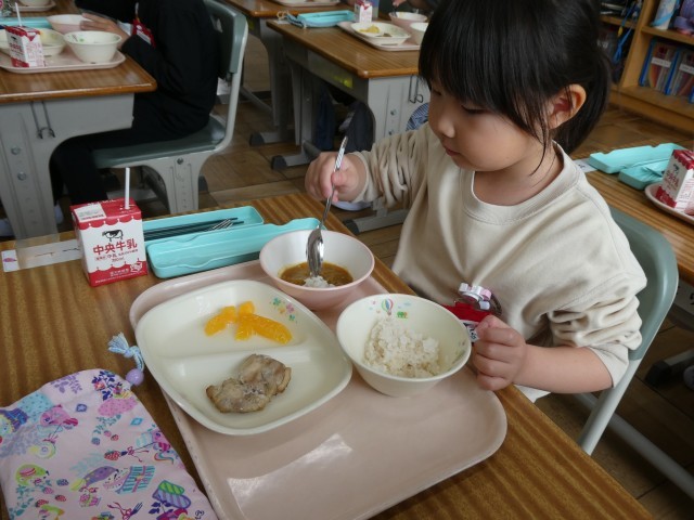 「おいしい!」「おかわりしたいな」という声も聞こえ、初めての給食はとても楽しい時間になったようです。