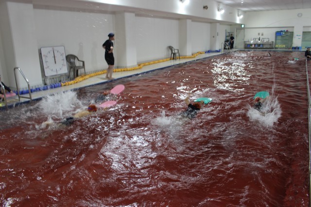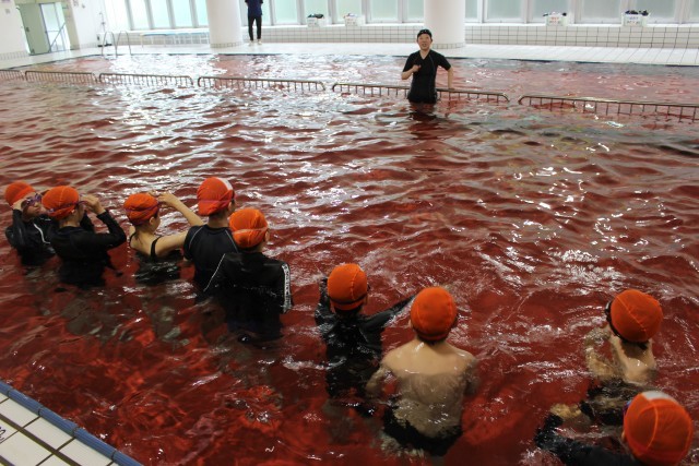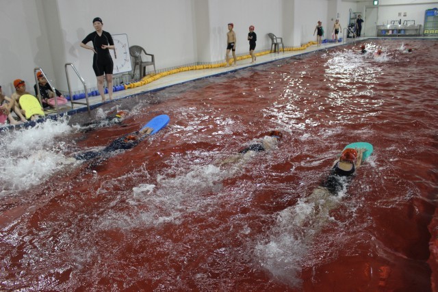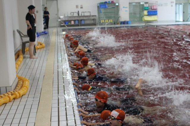 今日は4年生がプールの授業を行いました。