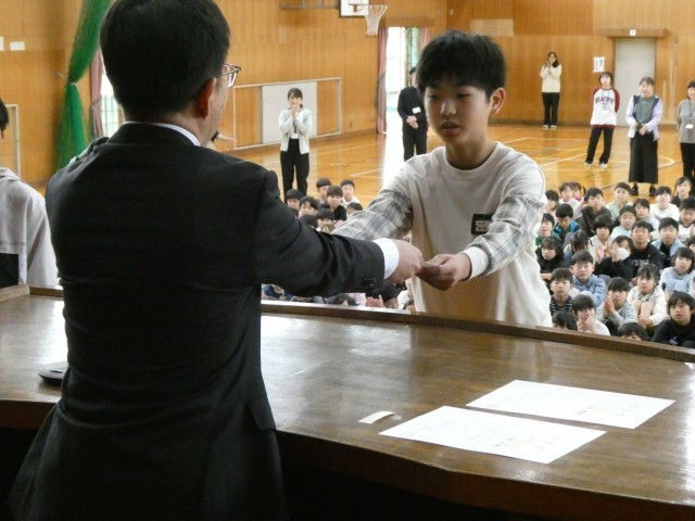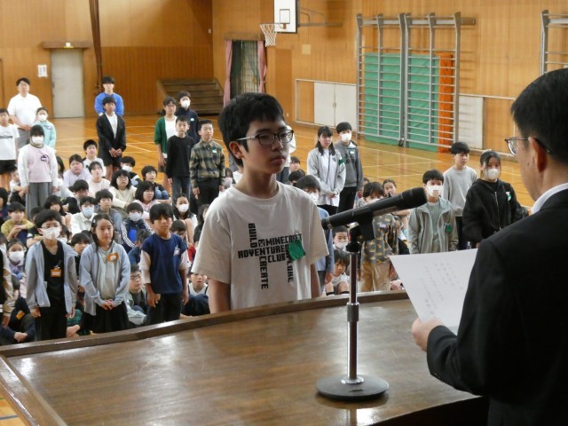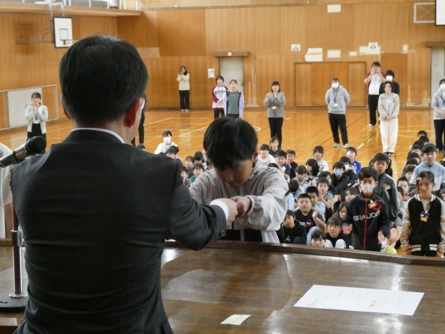 リーダーとしてのこれからの活躍に、全校児童から温かい拍手が送られました。
