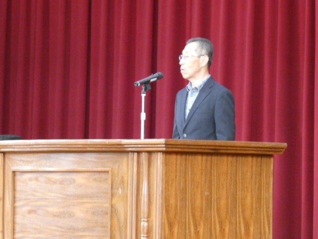 新学期がスタートして初めての朝会が体育館で行われました。