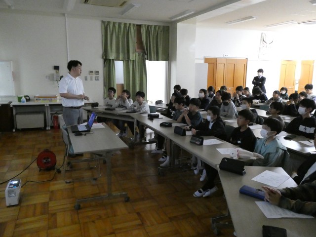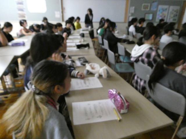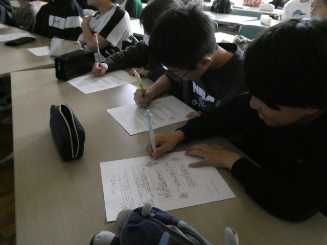 授業中、子どもたちは神谷先生の話を食い入るように聞き、手元の資料に熱心にメモを取っていました。