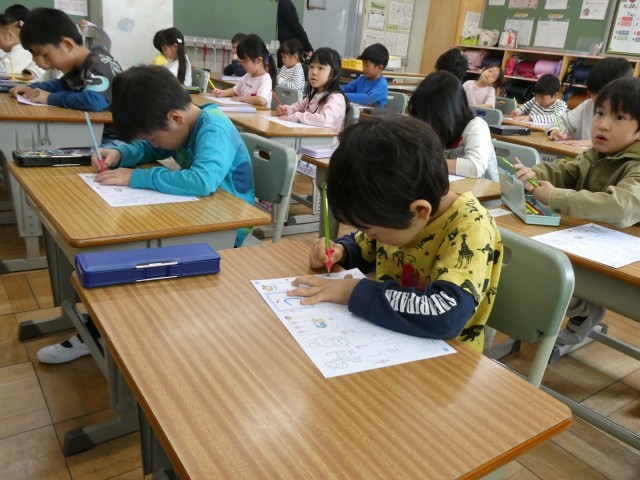 1年生の国語の授業では、ひらがなの学習が本格的に始まっています。