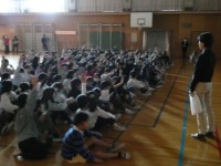 10:00に防災無線から、「シェイクアウト訓練」の放送が流れました。子どもたちは、放送が流れるとすぐに机の下に潜り、だんごむしのポーズをとりました。いつ地震が起こるか分からないので、今日の訓練のようにいつでも迅速に避難ができるとよいです。