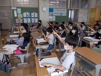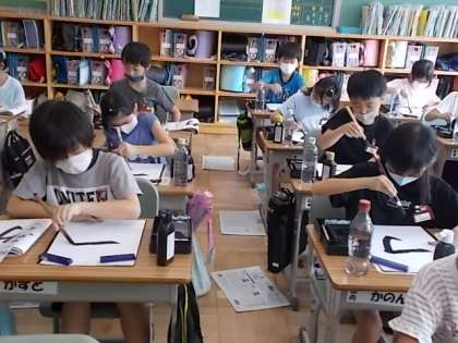 「力」という字を書きました。「おれ」と「はね」の書き方を確認した後、練習しました。