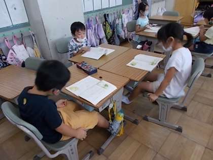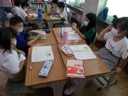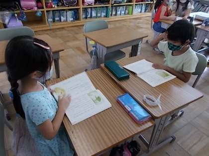 「お手紙」の音読劇に向けて練習しました。グループに分かれて、「声の大きさ」「表情」」顔の向き」「動き」に気を付けて練習しました。