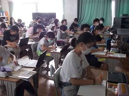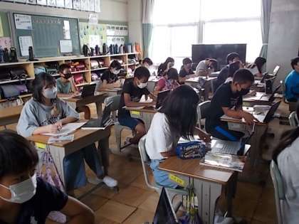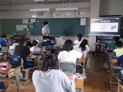 「武士による政治のはじまり」を学習しました。電子黒板を見ながら、先生の説明を聞いていました。