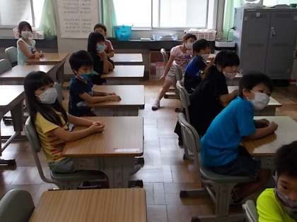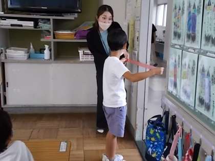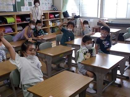 「おおきさくらべ」を学習しました。先生の机を教室の入り口から出せるかどうかをひもを使って調べました。みんな、楽しそうでした。