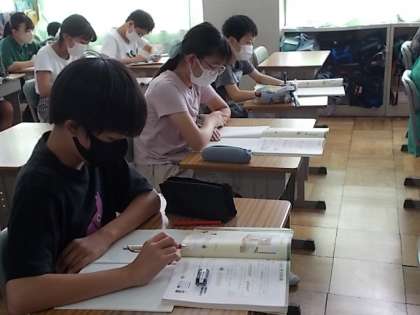 「比とその利用」を学習しました。問題を解いた後、身の回りで比で表せる物を見つけていました。