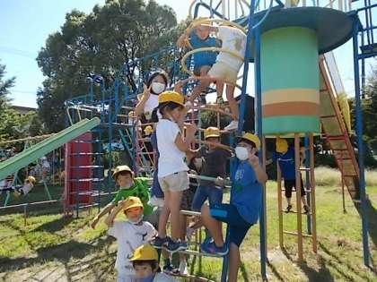 昨日まで熱中症指数が高かったため、外で遊べませんでしたが、今日は久しぶりに外で遊ぶことができました。みんな、元気いっぱいです。
