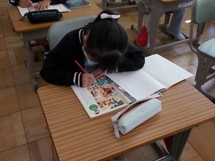漢字の学習を行った後、「漢字の広場」を学習しました。とても姿勢で、集中して取り組むことができました。