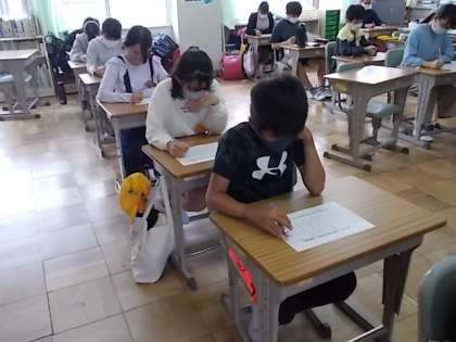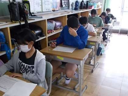 投票の様子です。どの児童も誰に投票するか真剣に考え、投票していました。