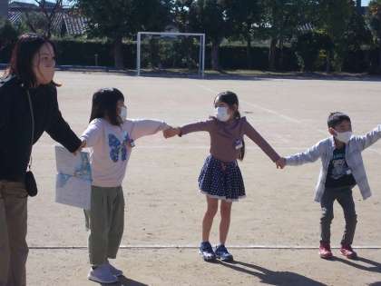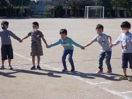 「くじらぐも」の学習をしました。「くじらぐも」に出てくる運動場の場面を実際に行いました。みんなで「天までとどけ、いち・にい・さん」と元気よくかけ声をかけました。