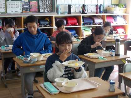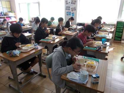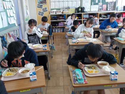 コロナ感染予防のため、黙食を徹底しています。さすが6年生です。