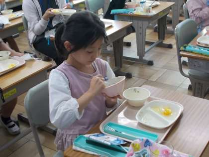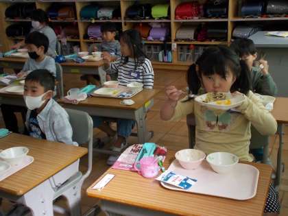 みんな、もりもり食べていました。早く食べ終わって、読書をしている児童もいました。