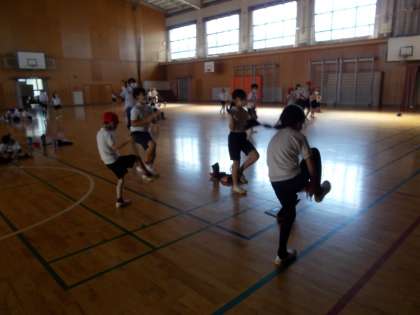 動画に合わせてダンスを覚えていました。次の体育の時間は、自分たちで考えて、振り付けをアレンジしていきます。みんな、楽しそうに踊っていました。